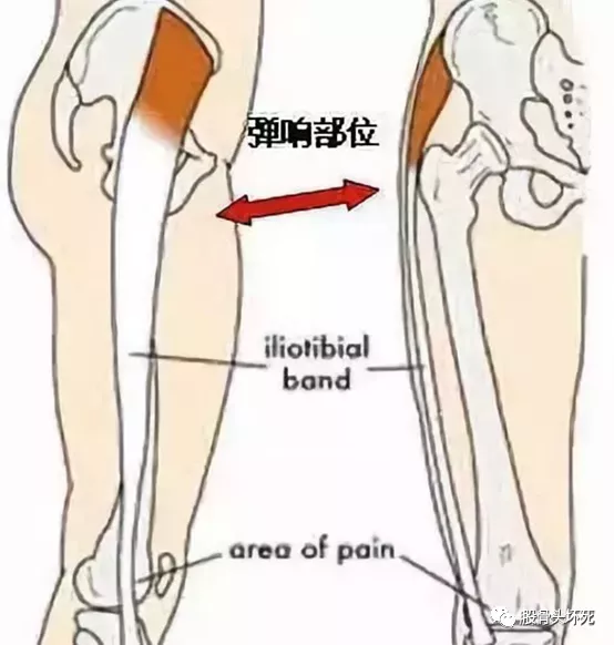 发病机制:弹响部位在大粗隆处,正常行走时,阔筋膜张肌的腱膜向下为髂胫束,其在该肢向前迈步到支撑期。该肌腱膜在大粗隆外有向前向后之滑动。当阔筋膜张肌紧张时,在该肢向前迈步摆动期中,该筋膜向前至大粗隆前方,至站地支撑期时,则向大粗隆后方滑动,由于该肌紧张,使该腱膜在大粗隆滑动出现响声及弹动,即为弹响髋。