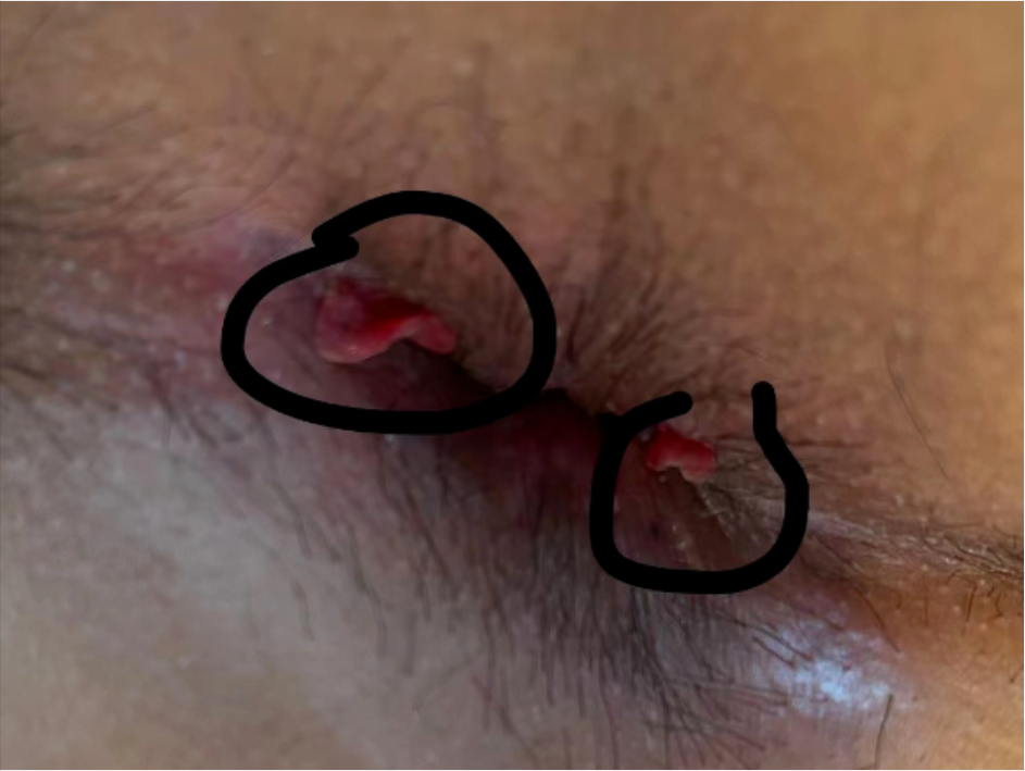 首先,痔术后皮桥水肿,皮桥顾名思义是伤口与伤口之间的桥梁,大多是术中为尽量保护肛门大小、弹性和肛门舒适度,避免术后肛门狭窄、皮损过多带来不适而保留下来的皮肤。术后由于排便等原因有时会出现皮桥水肿,大部分水肿随着伤口的愈合会逐渐消退吸收,但仍有部分水肿最终不能明显吸收而需要修剪,因此皮桥水肿可以说是痔疮切除和保护肛门权衡的结果。高手中的高手当然是又保护了肛门功能又避免水肿,或者水肿吸收较满意。水肿长什么样呢,如下图所示: